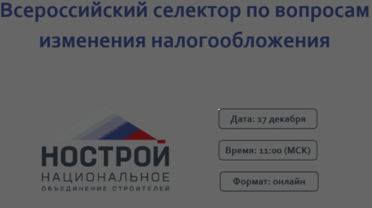 Национальное объединение строителей (НОСТРОЙ) совместно с представителями налоговой системы Российской Федерации проведет Всероссийский селектор по вопросам изменения налогообложения. Цель мероприятия – разъяснение изменений налогового законодательства для представителей строительной отрасли.